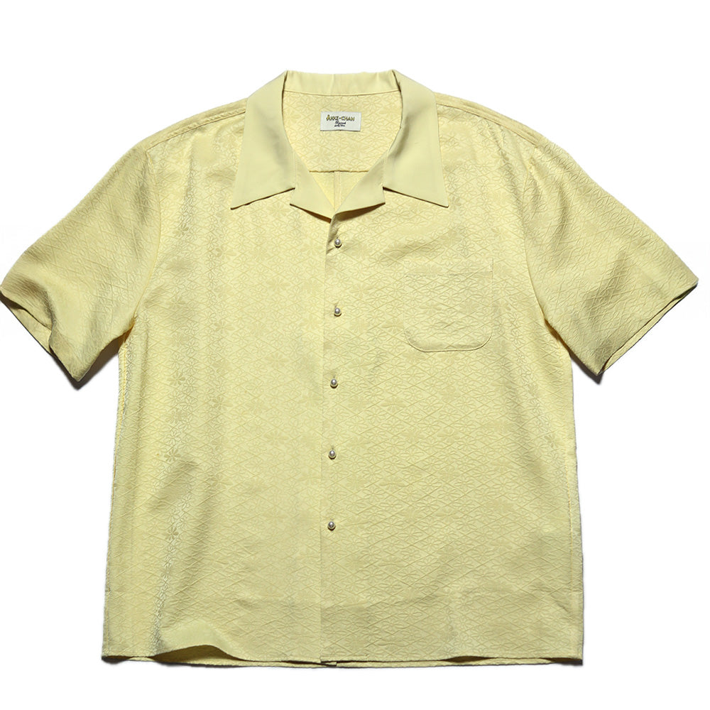 Cut from a vintage iromuji kimono, this shirt features a woven pattern of stylized kiku (chrysanthemum) flowers — subtle, elegant, and deeply symbolic.